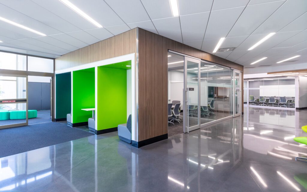 Providing expanded health science education for students at Central Community College, this 45,000 square foot addition to an occupied college campus features an open sitting area with a pergola design. Materials for distance learning are integrated throughout the facility, incorporating extensive camera and audiovisual equipment. It includes a pediatric and emergency medical service simulation lab.
